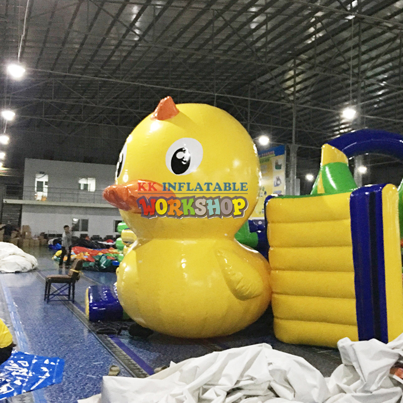 The inflatable yellow duck-shaped arena offers multiple utilities, including: